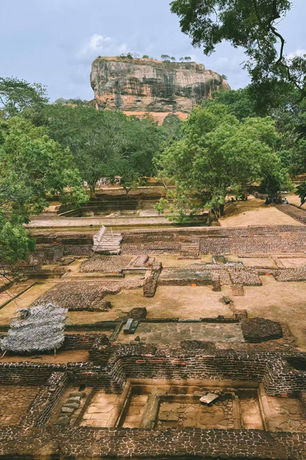 爬上獅子岩 - 世界第八大奇蹟及世界文化遺產 【獅子岩 Sigiriya Rock】被風化的紅磚階梯,手掌觸碰的,是千年前一個王朝的野心與落日 200米巨石上的天上宮闕,由遠處看,獅子岩就像是俯伏在平地上的大獅子 - 頂部平坦貌似獅子的大石,獅頭風化掉落,只剩下孤伶伶的獅身,背上藏了一個建在二百米高空的花園宮殿。這座天上宮闕是由摩利耶王朝的國王卡西雅伯(Kasyapa)(西元447 - 495年)建造。卡西雅伯國王弒父登基,為了逃避為父報仇的同父異母弟弟莫加蘭(Mogallana) 復仇,十八年間,沿山建造了這座軍事防護重於統治意義的碉堡宮殿。 庭中有國王的石制寶座,蓄水池,宴會廳,議事廳,國王寢宮,及石身的鏡牆及壁畫等。以當時的建築技術,這座天上宮闕是如何建造的? 在這陡峭的岩壁上,人們如何攀爬如何將原料運上去蓋宮殿? 一直是考古建築學家樂於探究的主題!